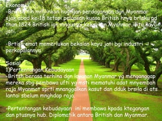 Cara Peluasan Kuasa British di Myanmar 1552 -1553 Perang Inggeris-Myanmar II 1852 -1853 a Hubungan antara British dengan Myanmar semakin tegang apabila Raja Pagan Min enggan membayar ganti rugi. Download to read offline. Perluasan kuasa 1.